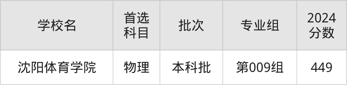 首选物理科目考生能上的有1所,全部在本科批次录取。具体有:沈阳体育学院第009组(449分)。