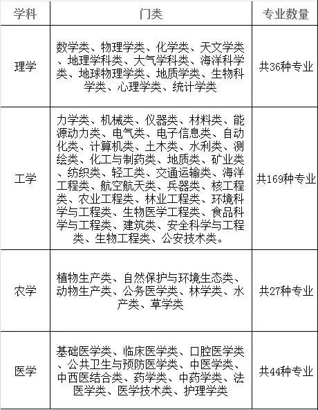 教育部颁布的《新版专业目录》中有506种专业,其中理、工、农、医四大门类就有276个专业,占总专业数的一半以上。