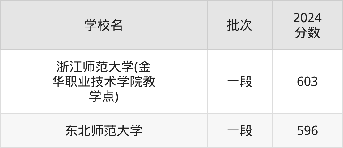1、浙江师范大学(金华职业技术学院教学点)(2024年603分)