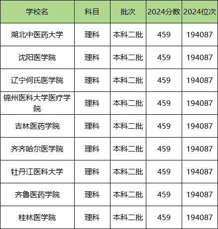 2024年二本医科大学最低录取分数线是459分,收分最低的学校有锦州医科大学医疗学院、吉林医药学院、齐齐哈尔医学院等,这都是过二本线能上的二本医科大学。但这是四川理科招录数据,各省二本医科最低分不同,还需具体分析。
