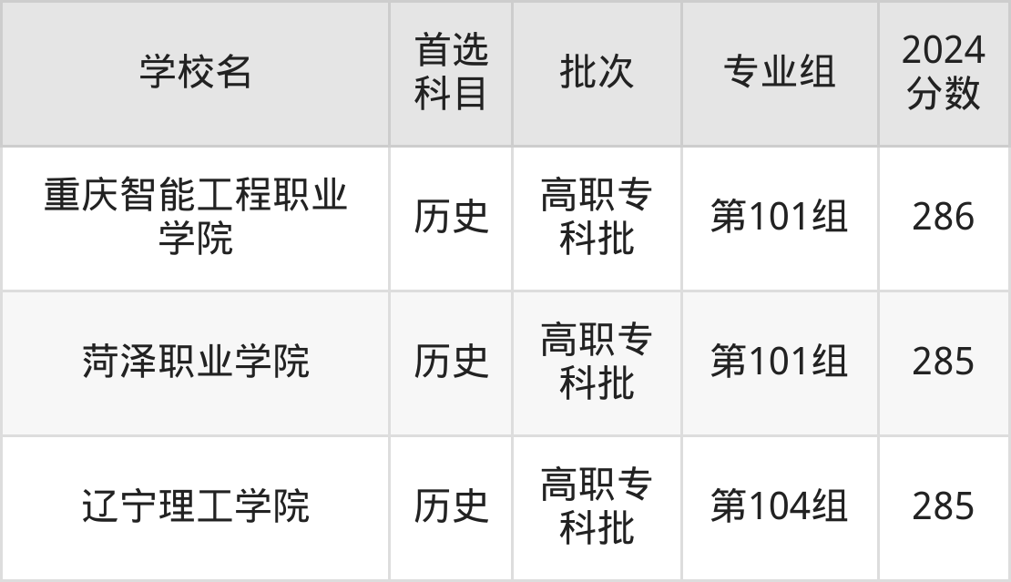 3、陕西工商职业学院(2024年历史类第101组292分)