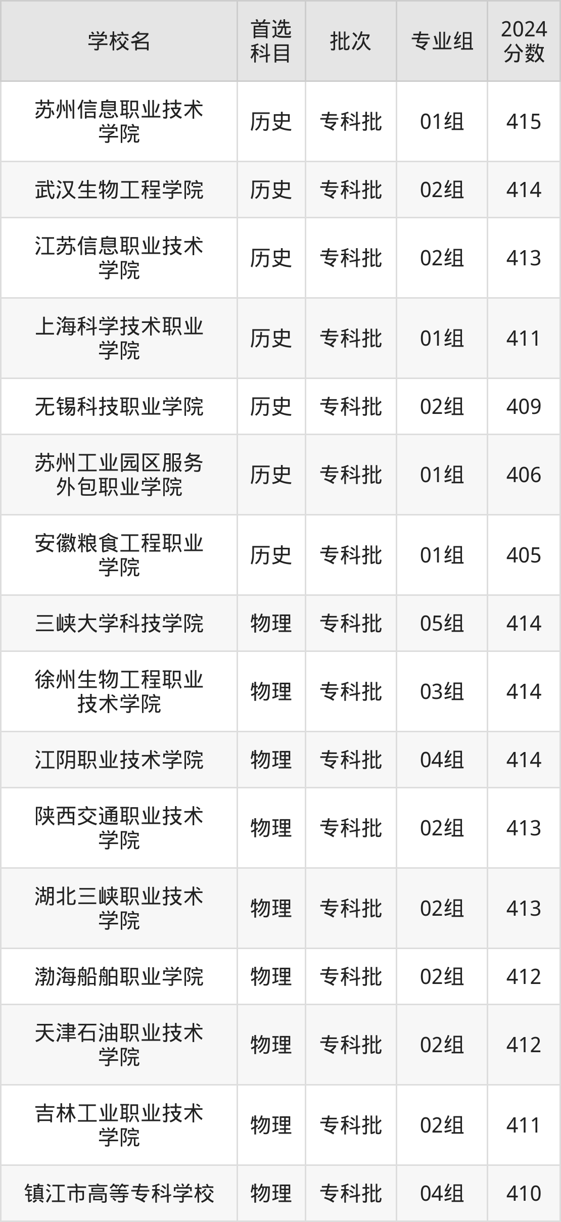 根据2024年高考招录数据,录取分数线刚好为410分的理工类大学有镇江市高等专科学校、常州工业职业技术学院。下面是这些学校的相关介绍:
