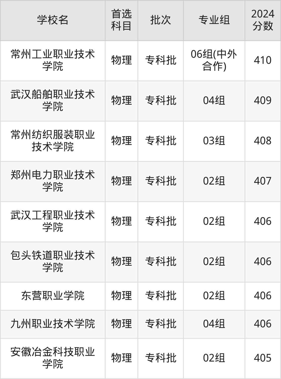 2、常州工业职业技术学院(2024年物理类06组(中外合作)410分)