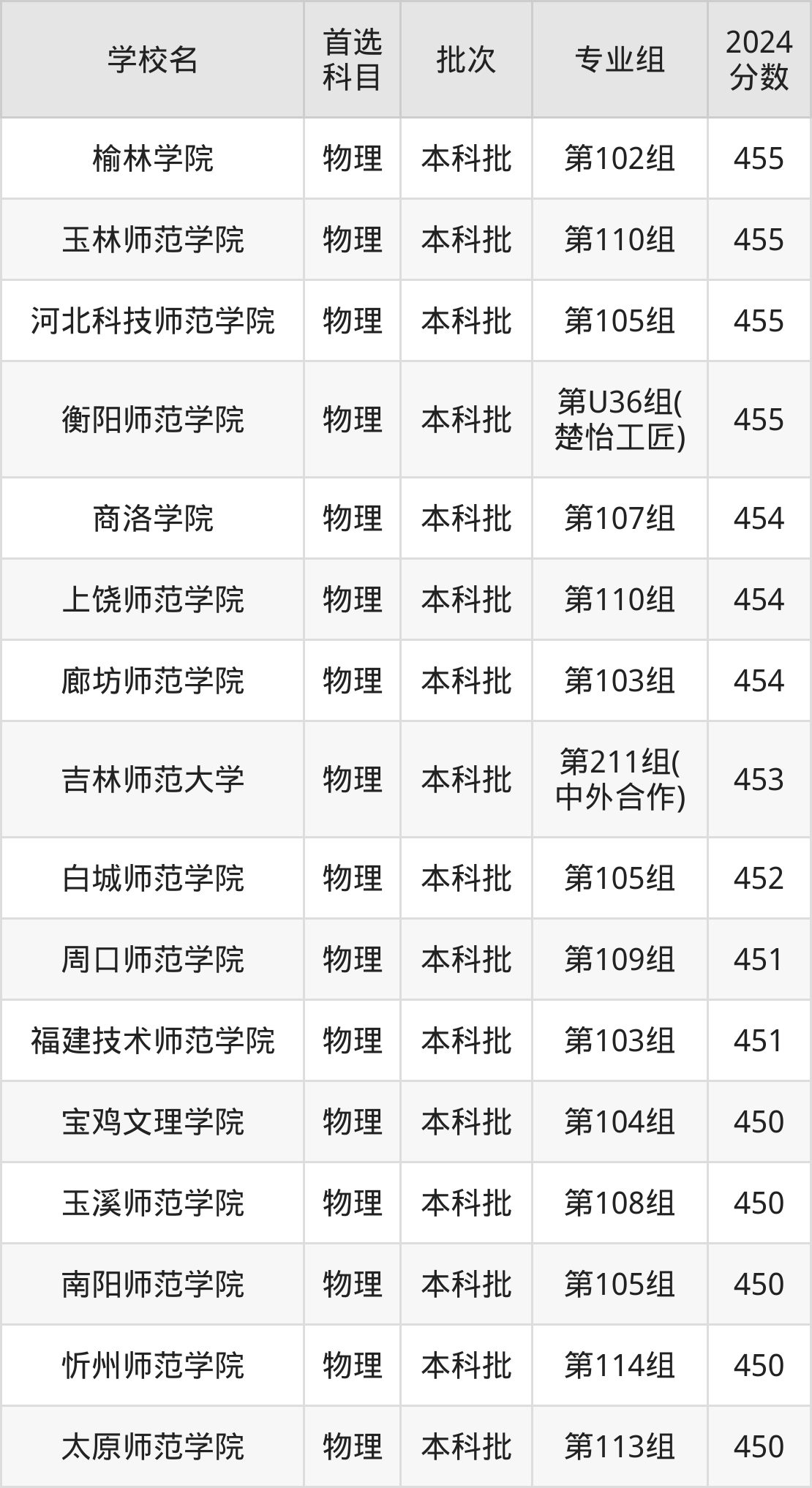 3、玉溪师范学院(2024年物理类第108组450分)