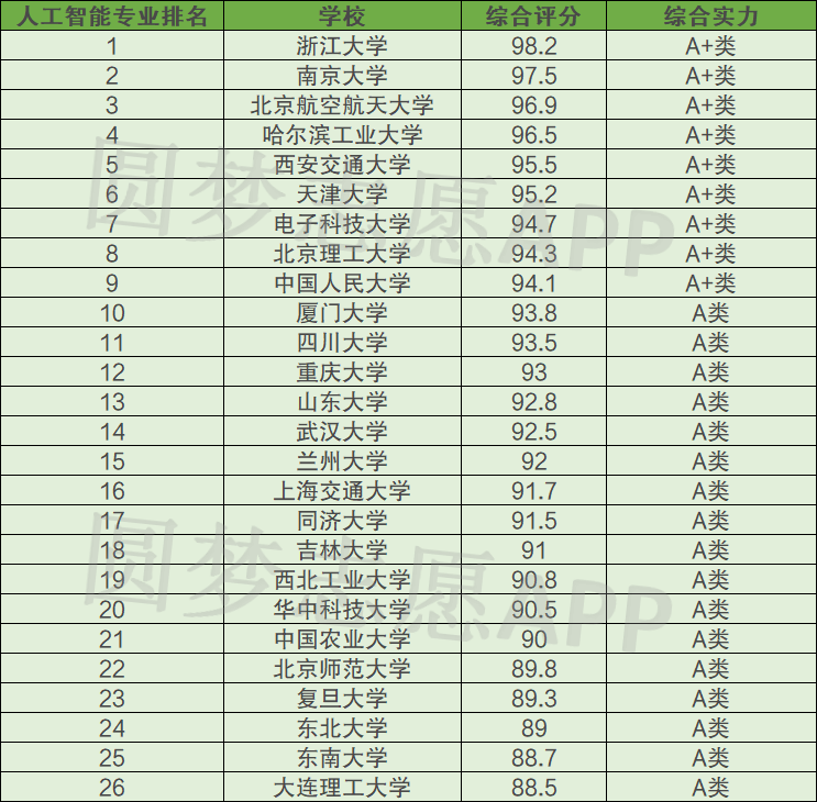 二、985大学人工智能专业排名