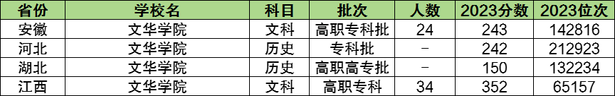 2023年文华学院专科招生在湖北省最低,需要156分以上,最低分位次218539名。