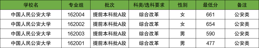 2025年该校公安类专业在天津提前批招生分数中,女生最高录取分为661分;女生最低录取分为654分。