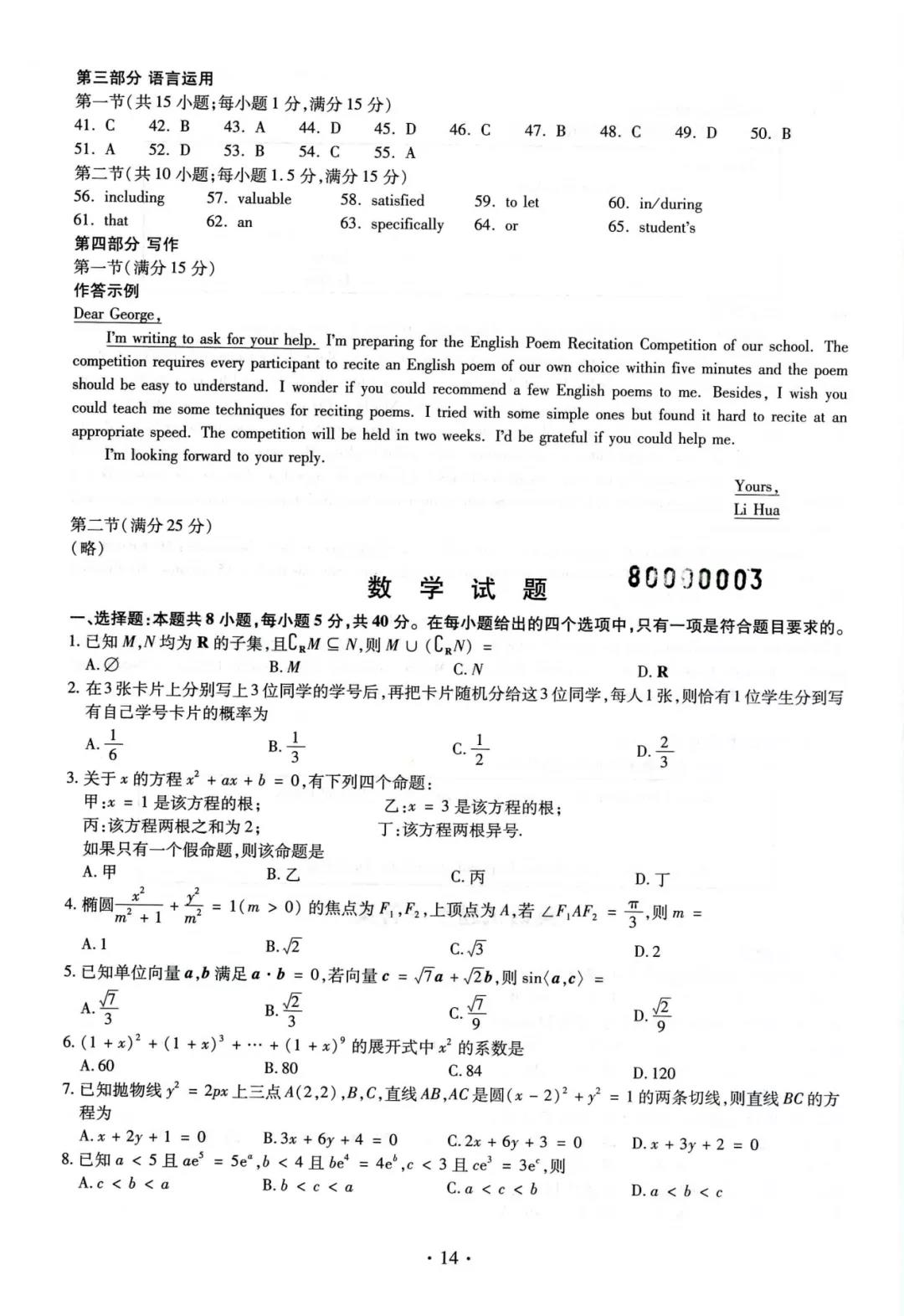 目前,八省联考福建省试题答案最新公布!其他省份是否会公布标准答案,现在还未可知。圆梦志愿会第一时间更新相关消息,还请大家保持关注!