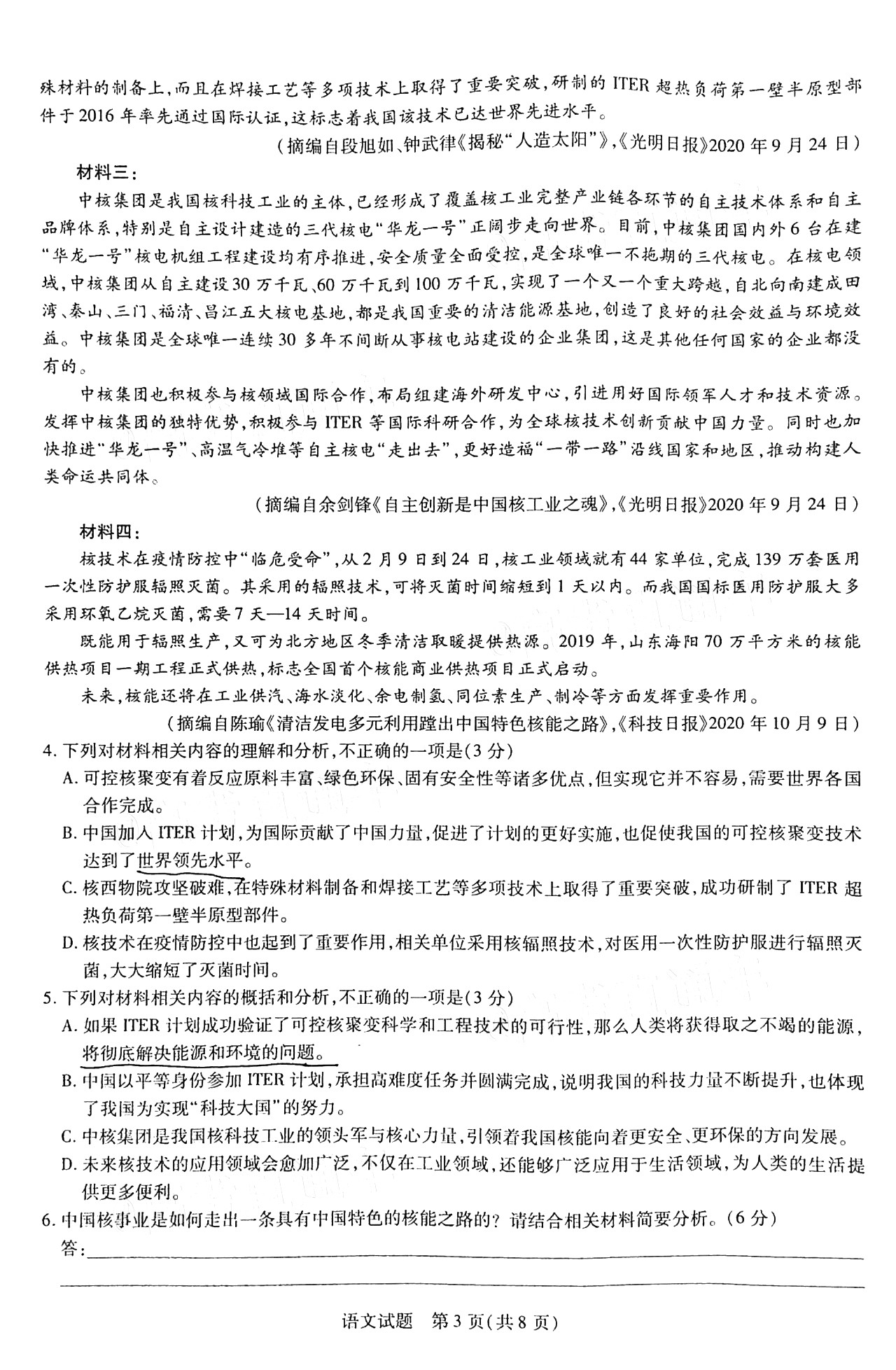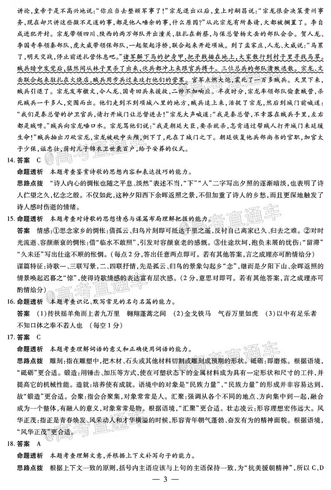 二、2021年河南省天一大联考语文试卷参考答案如下: