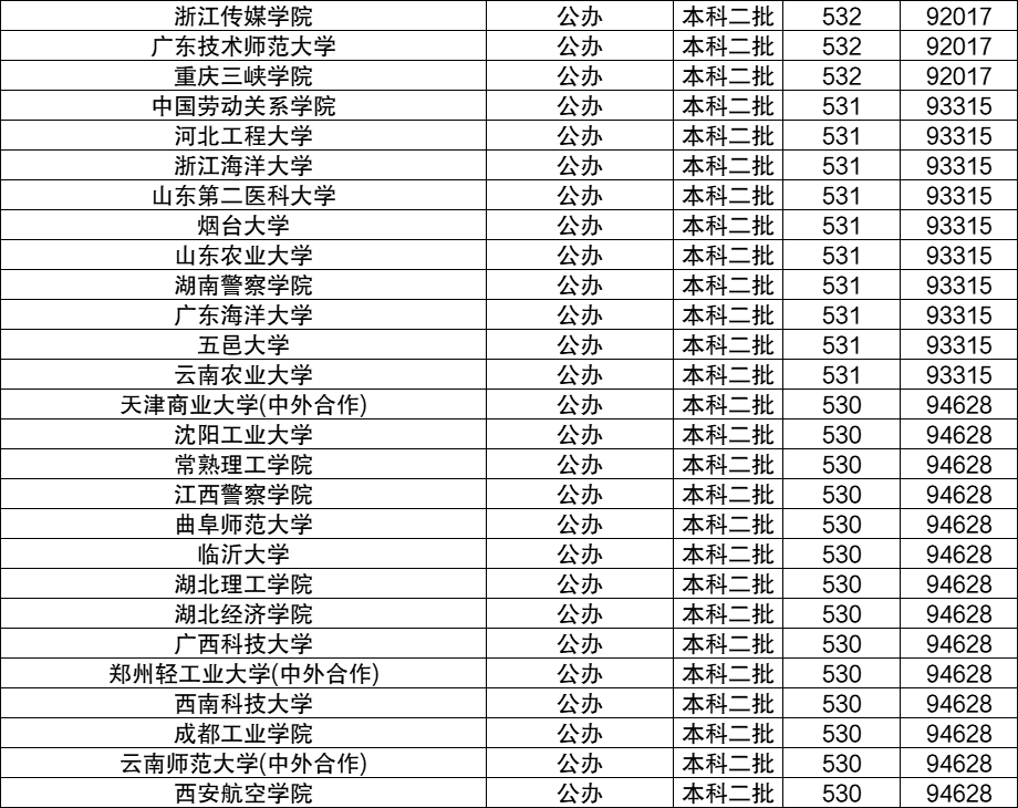 下面是文科530到580分能上的所有大学名单汇总,数据较多,请滑动查看。