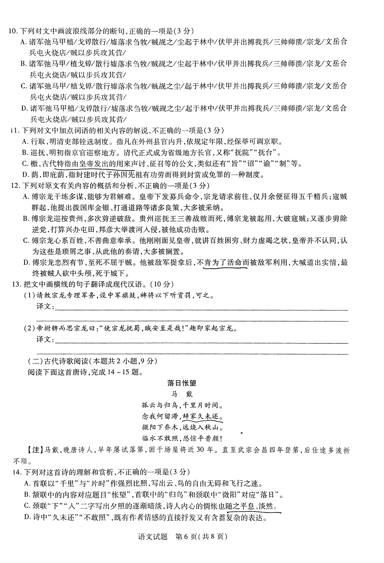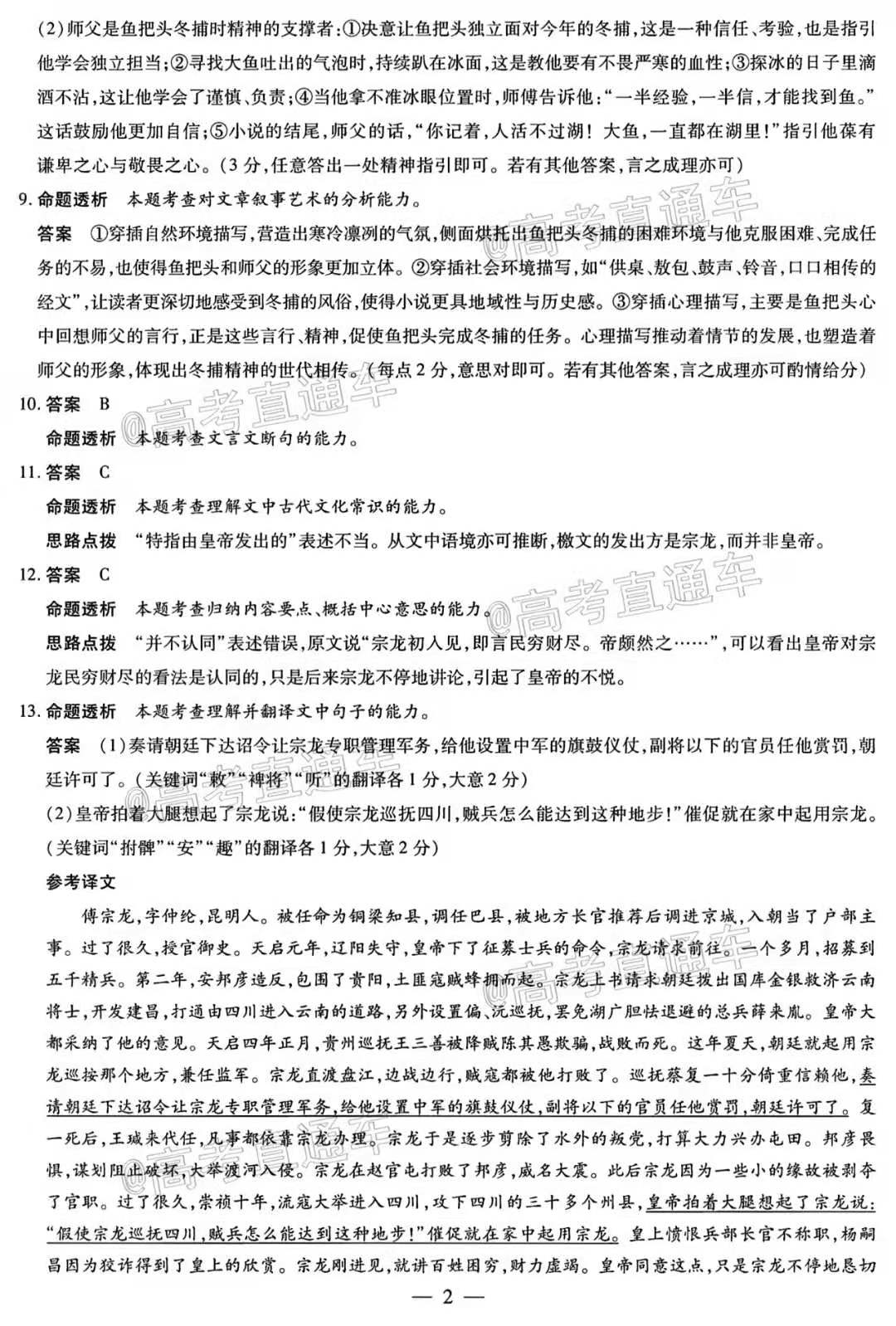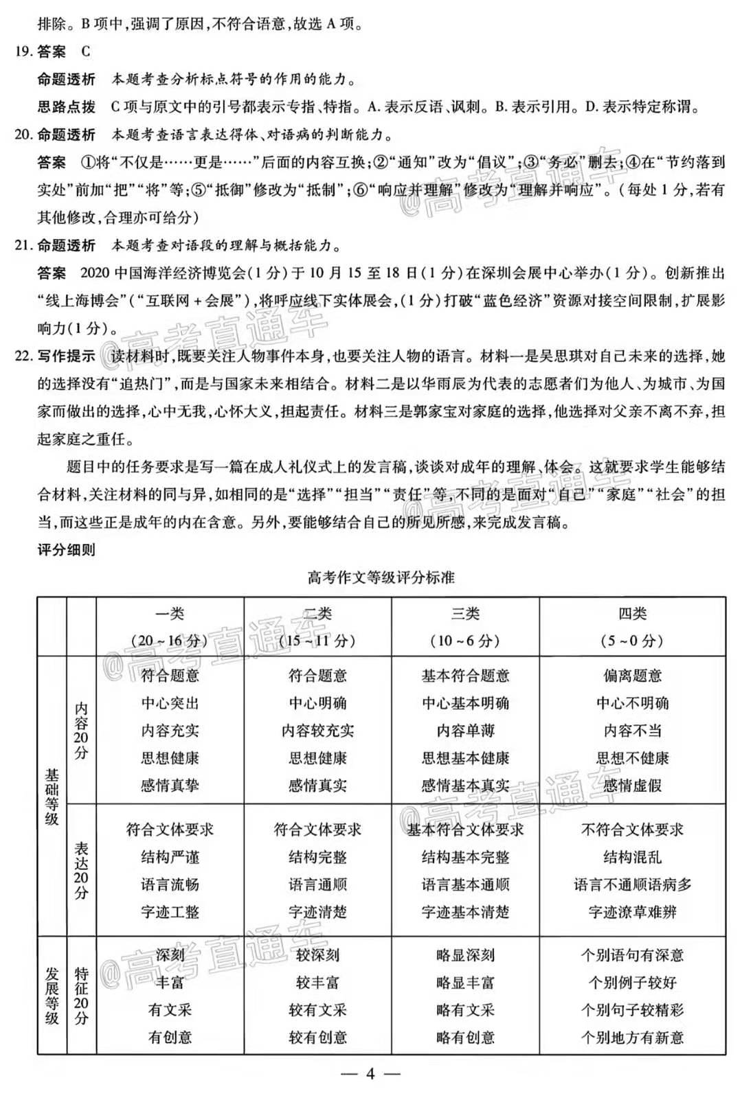 二、2021年河南省天一大联考语文试卷参考答案如下: