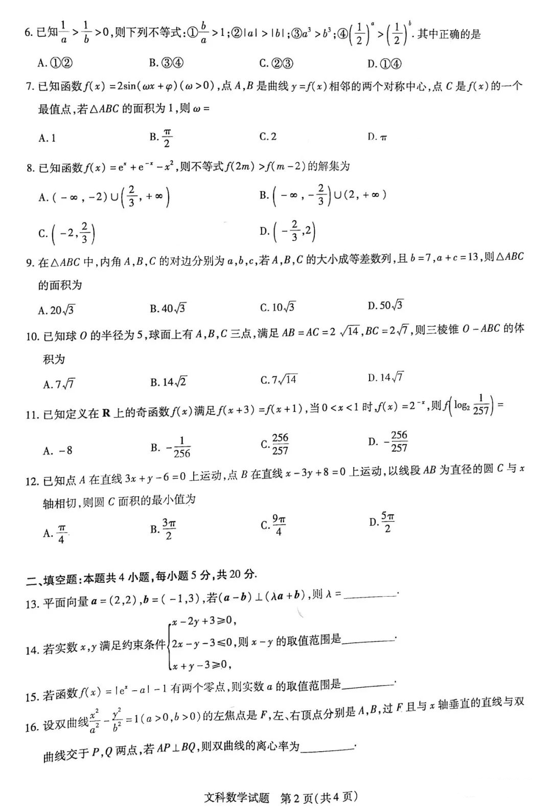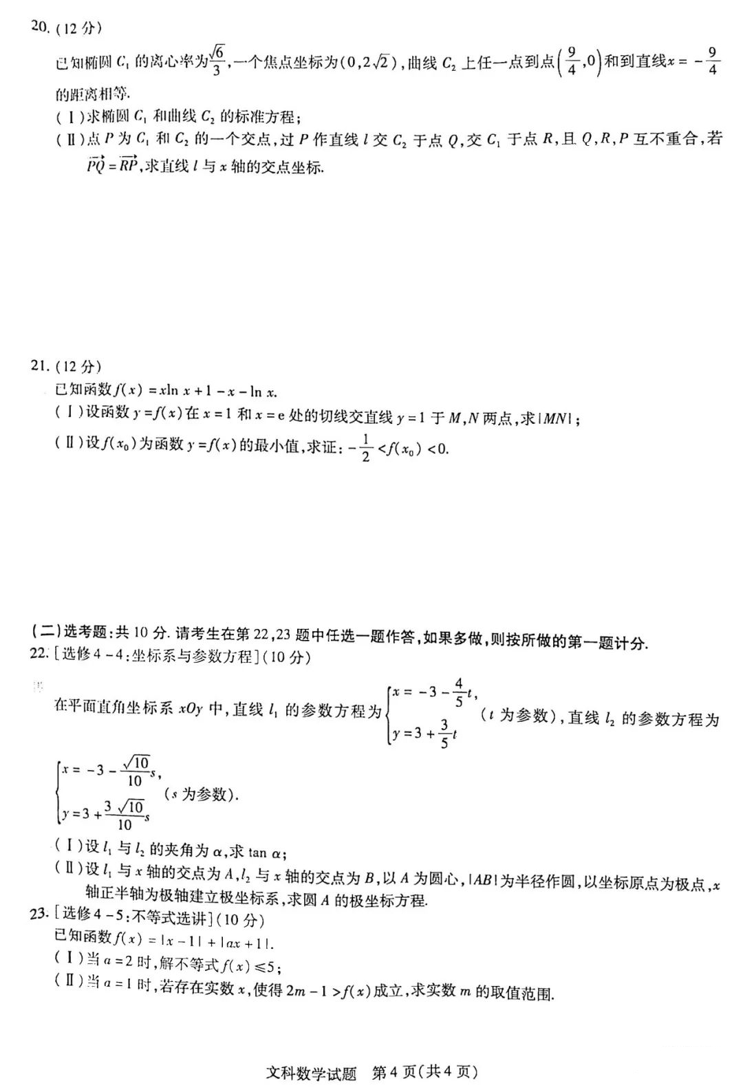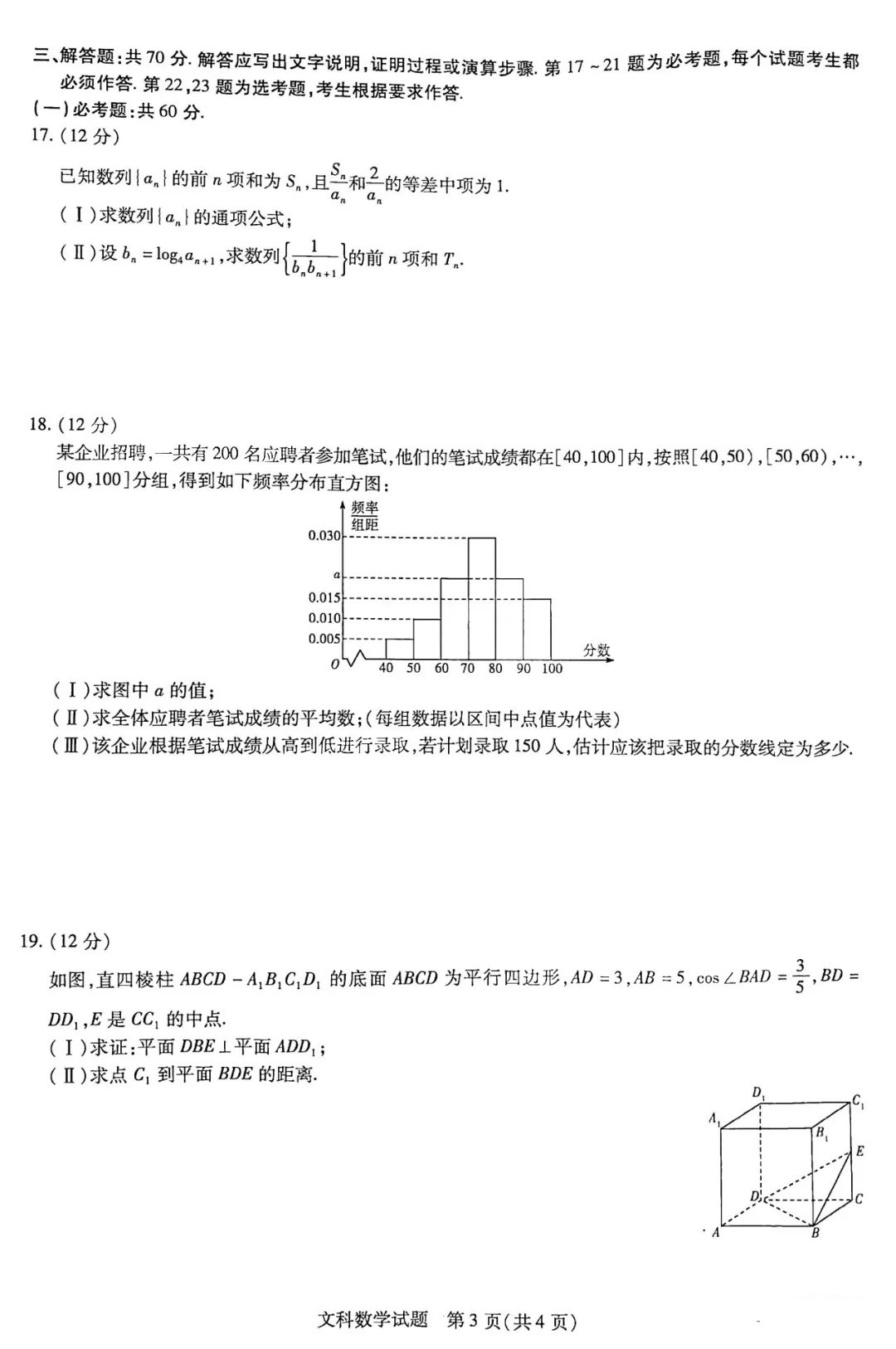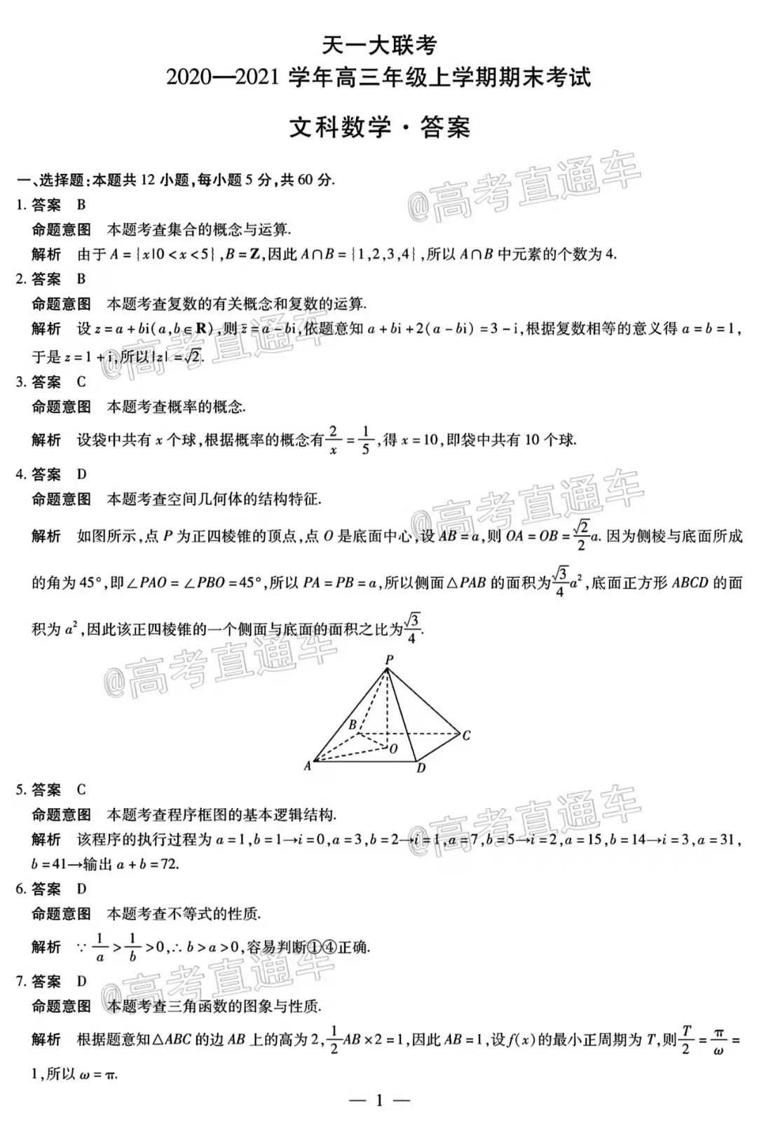 一、2021年河南省天一大联考文科数学试卷及答案解析: