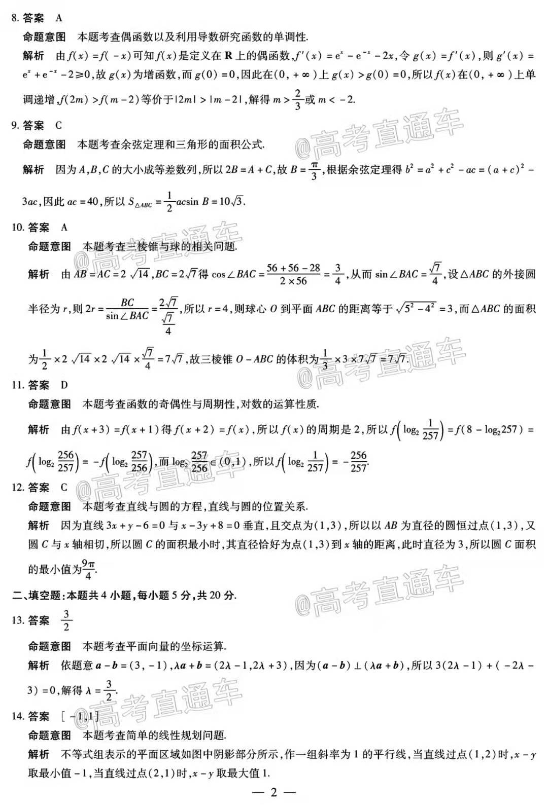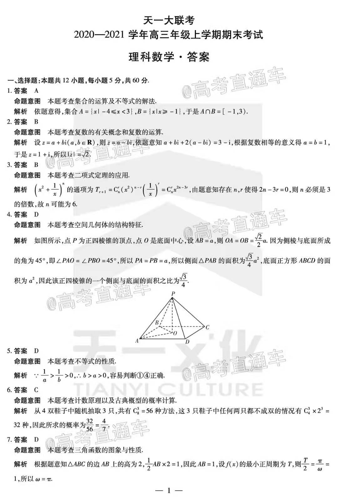 二、2021年河南省天一大联考理科数学试卷及答案解析: