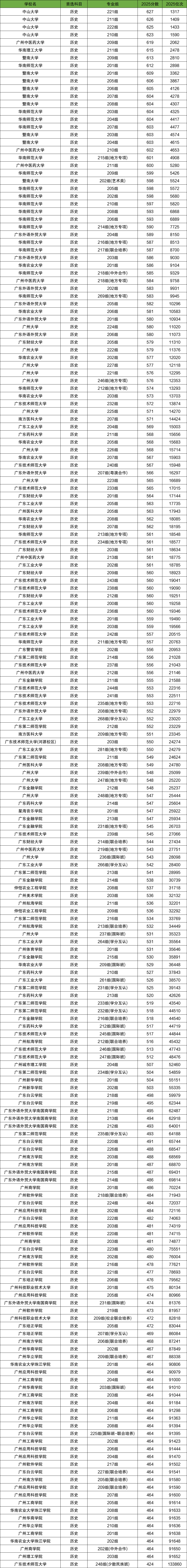 二、广州历史类各大学录取分数线