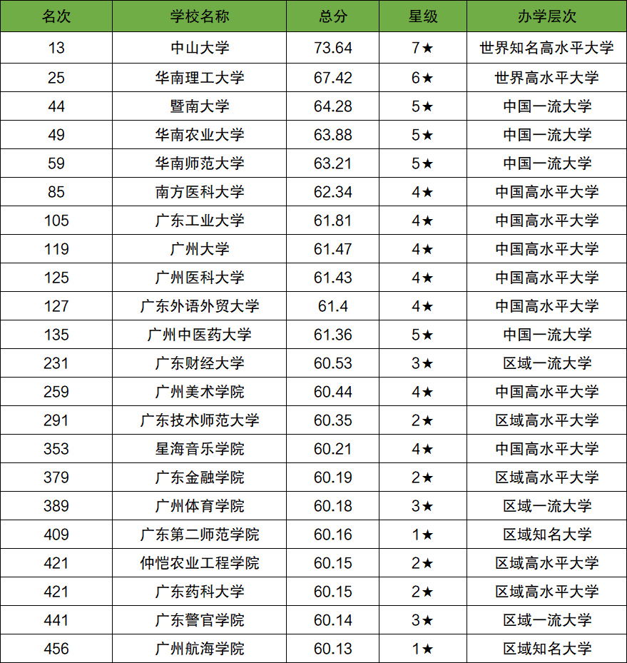 一、广州各大学排名