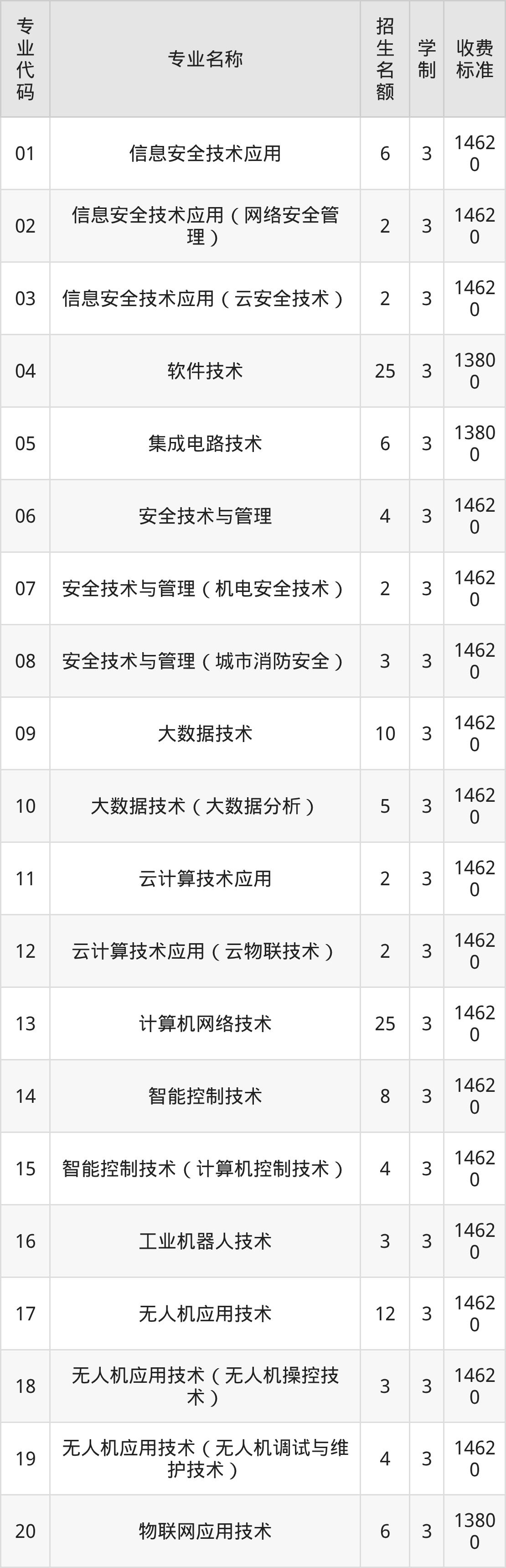| 01 | 信息安全技术应用 | 2 | 3 | 14620 |