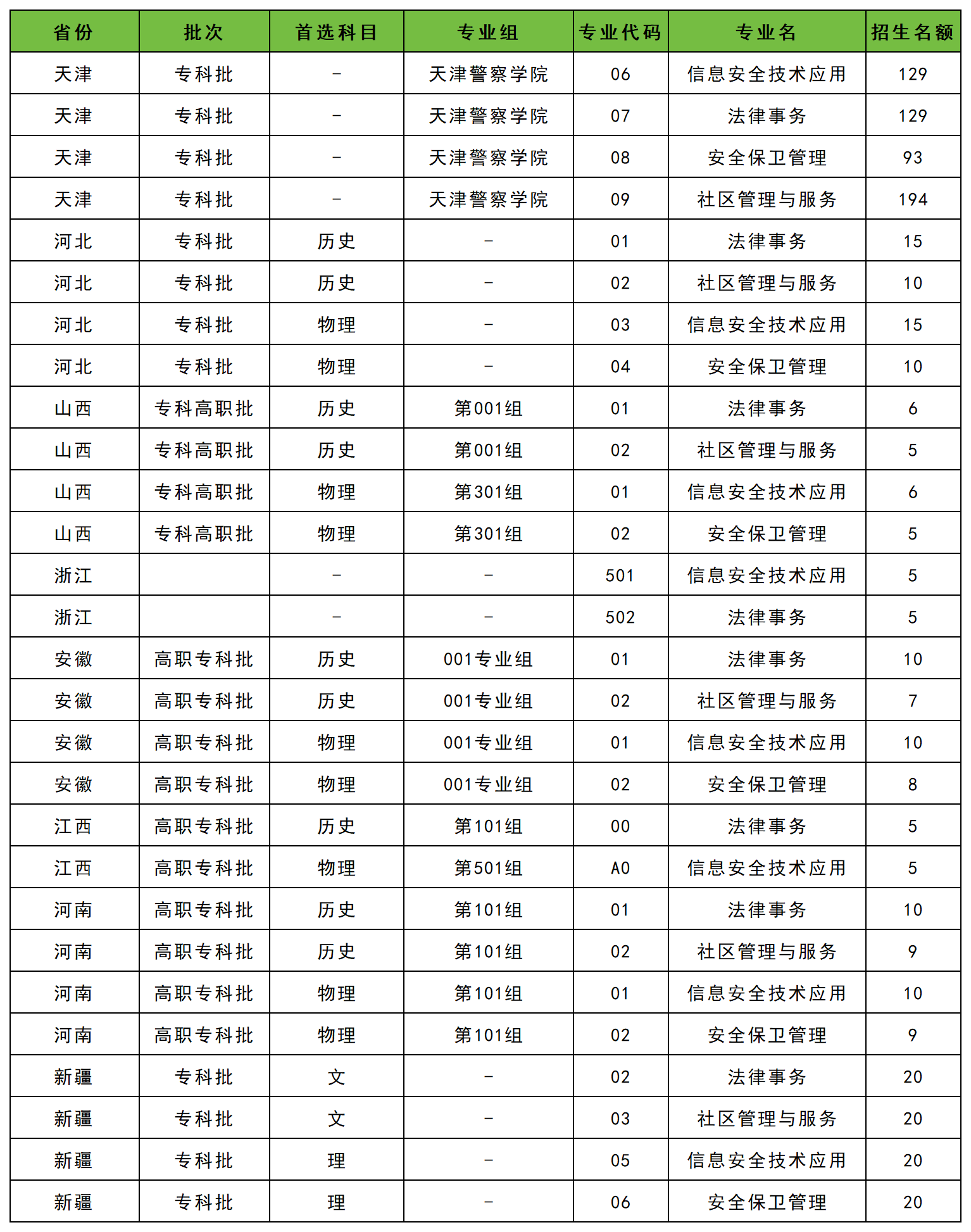 非公安专业:信息安全技术应用、安全保卫管理、法律事务、社区管理与服务