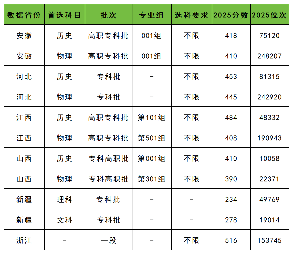 天津警察学院2025在各省专科普通批招生最低分数线汇总如下:
