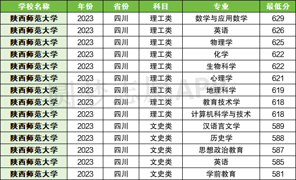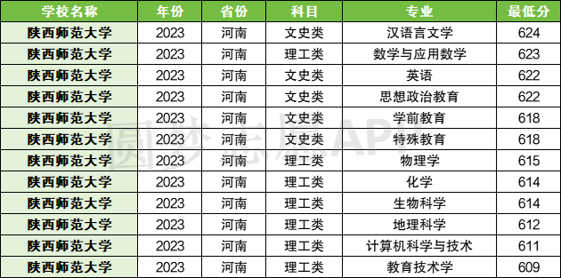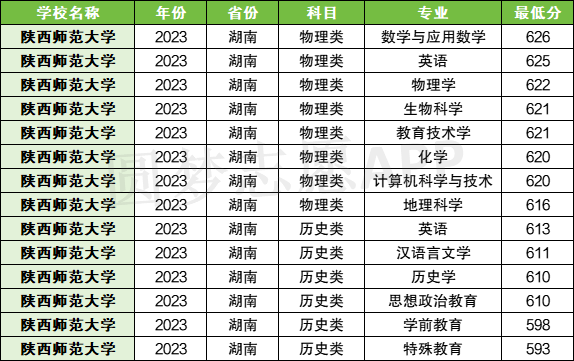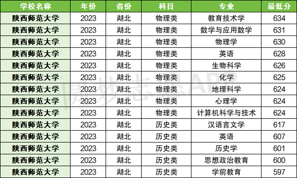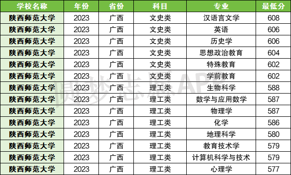 小编在此整理了陕西师范大学的公费师范生专业2023年在部分省市的录取分数线,详情如下: