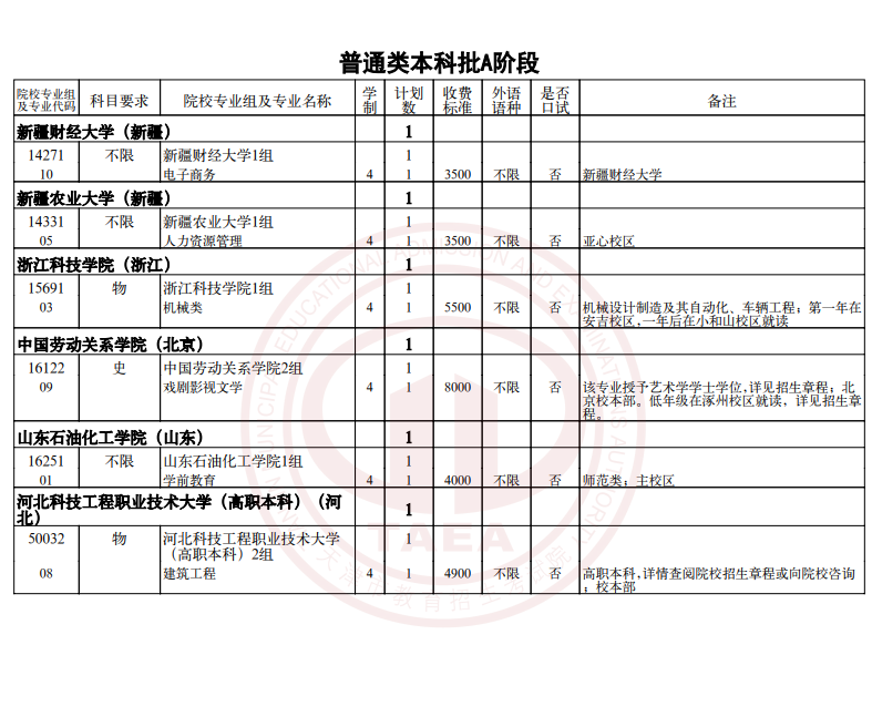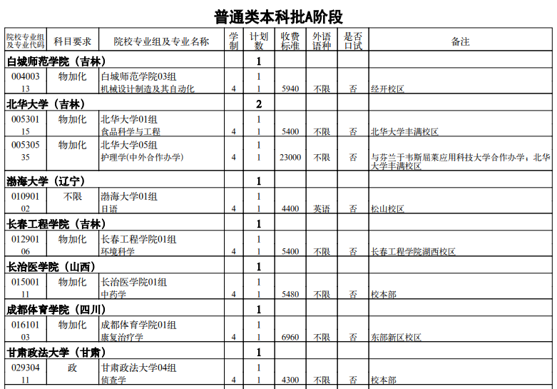 2023天津普通类本科批A阶段征集院校有:北华大学、长治医学院、合肥学院、河北质地大学、沈阳医学院、沈阳工业大学、山西中医药大学、山东石油化工学院等。