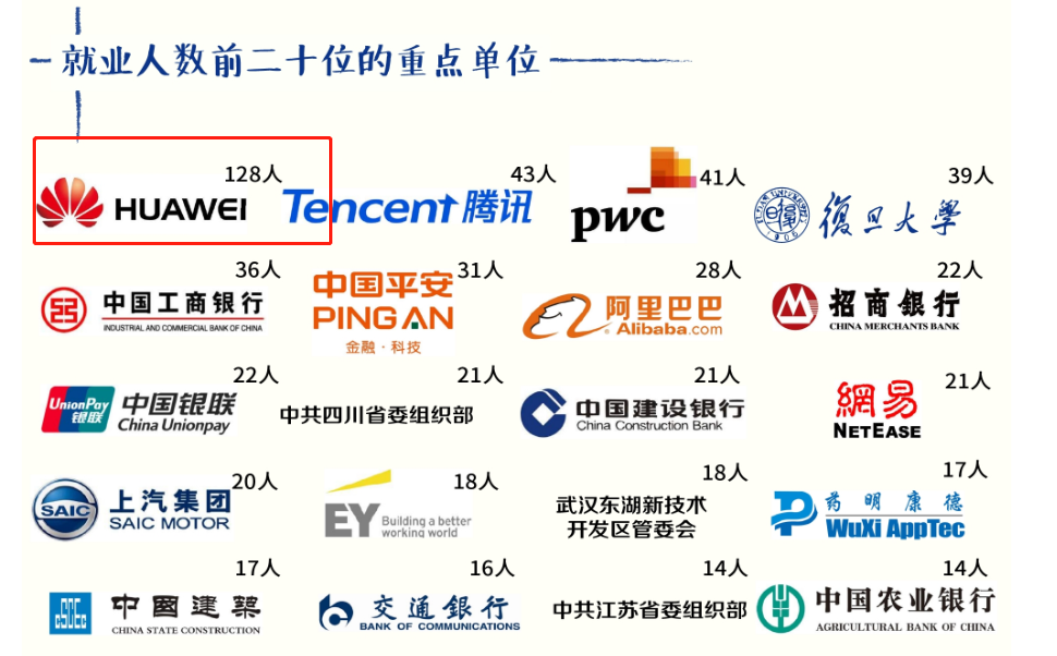(24)电子科技大学:华为技术有限公司连续三年(2017-2019年)进入本科毕业生就业人数前十单位名单,但并未公布具体的人数。