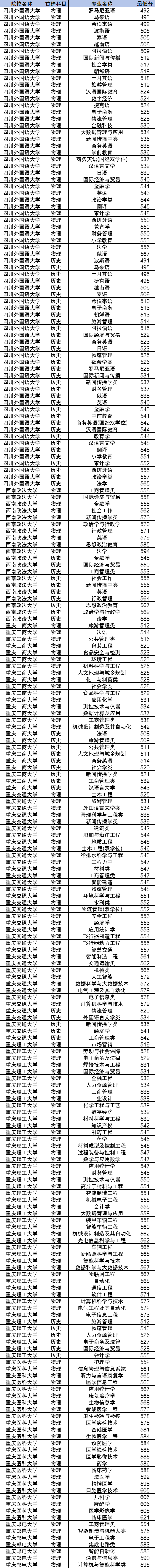 2024年地方专项计划各个大学分数线重庆市一览表如下: