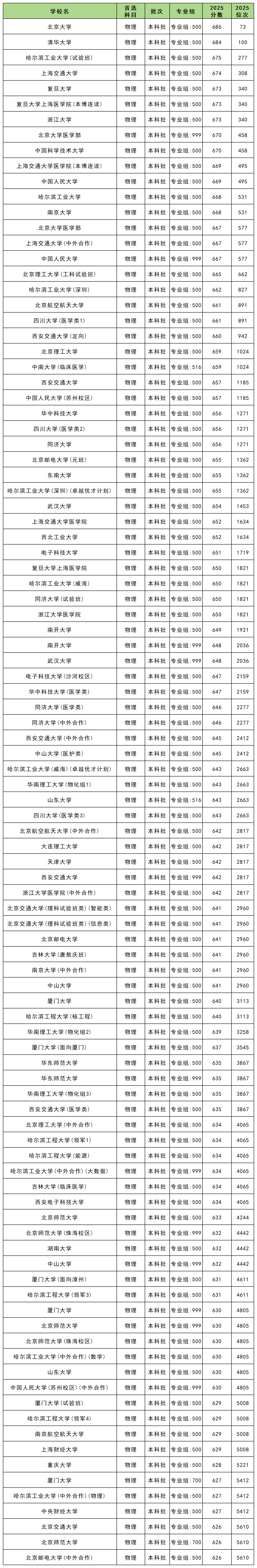 如下为各位展示的是2025年福建物理组211院校的Top100录取分及位次情况:
