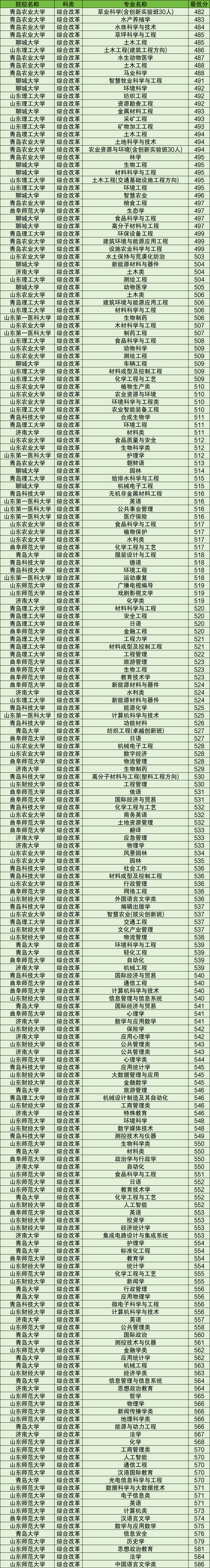聊城大学:土木工程485分、智慧牧业科学与工程491分、环境科学492分;