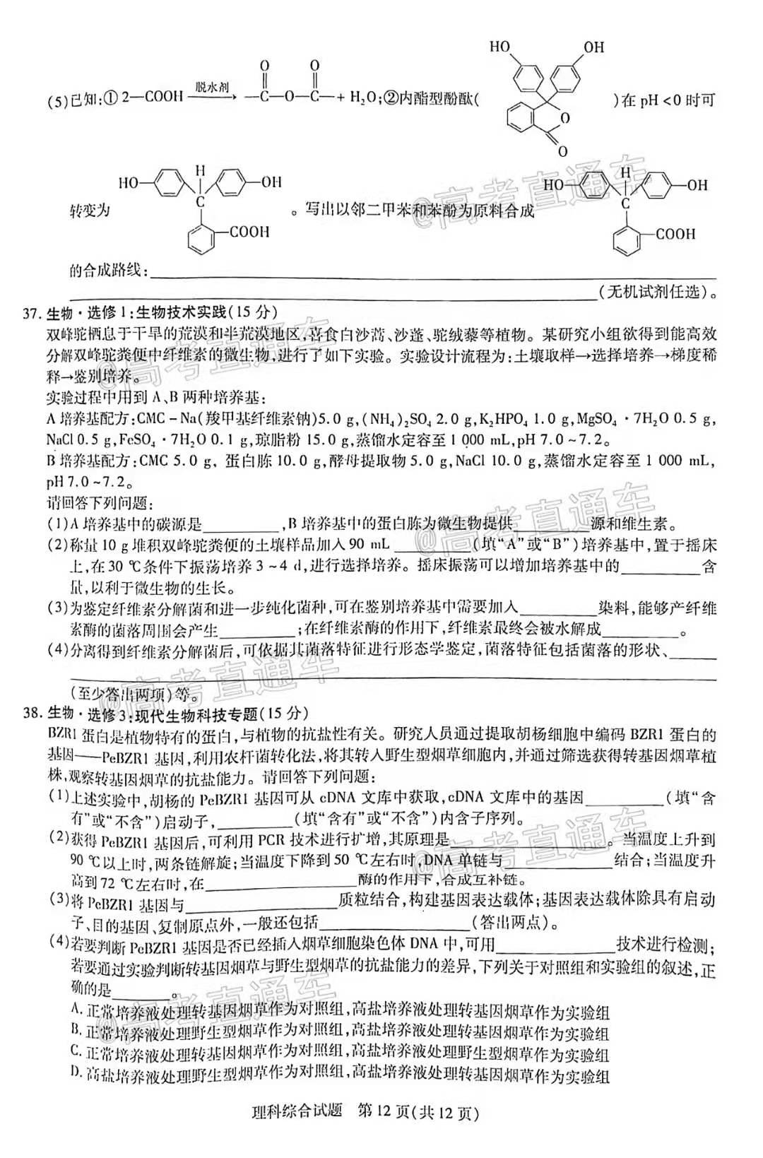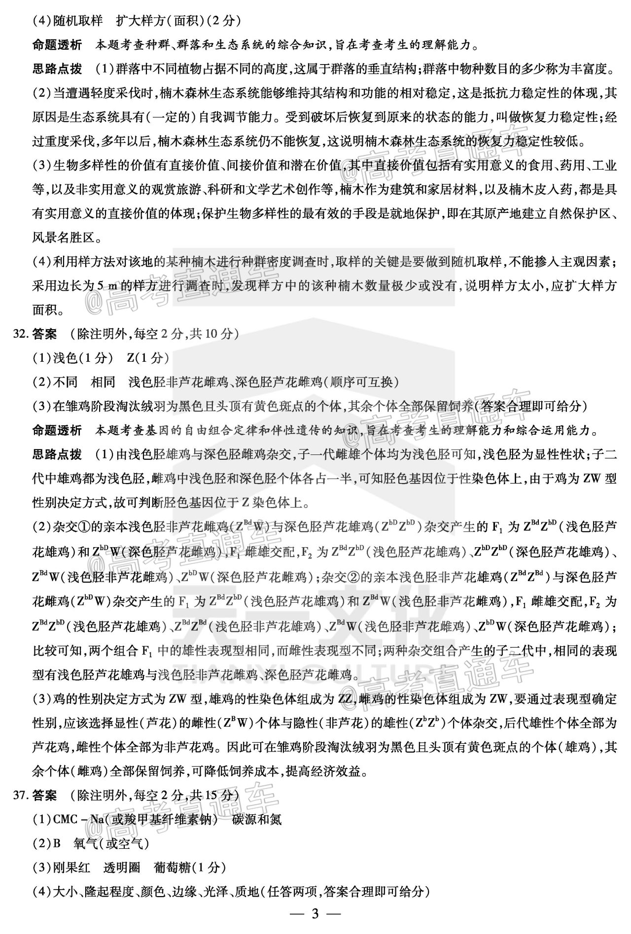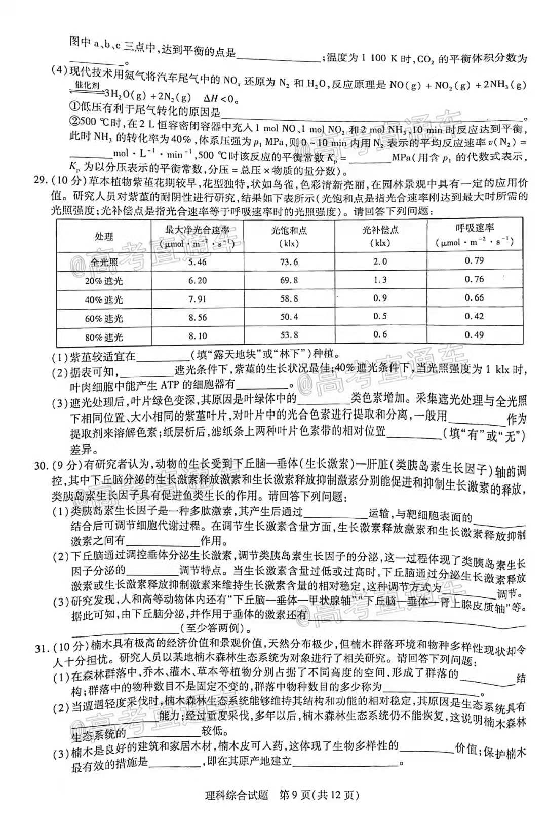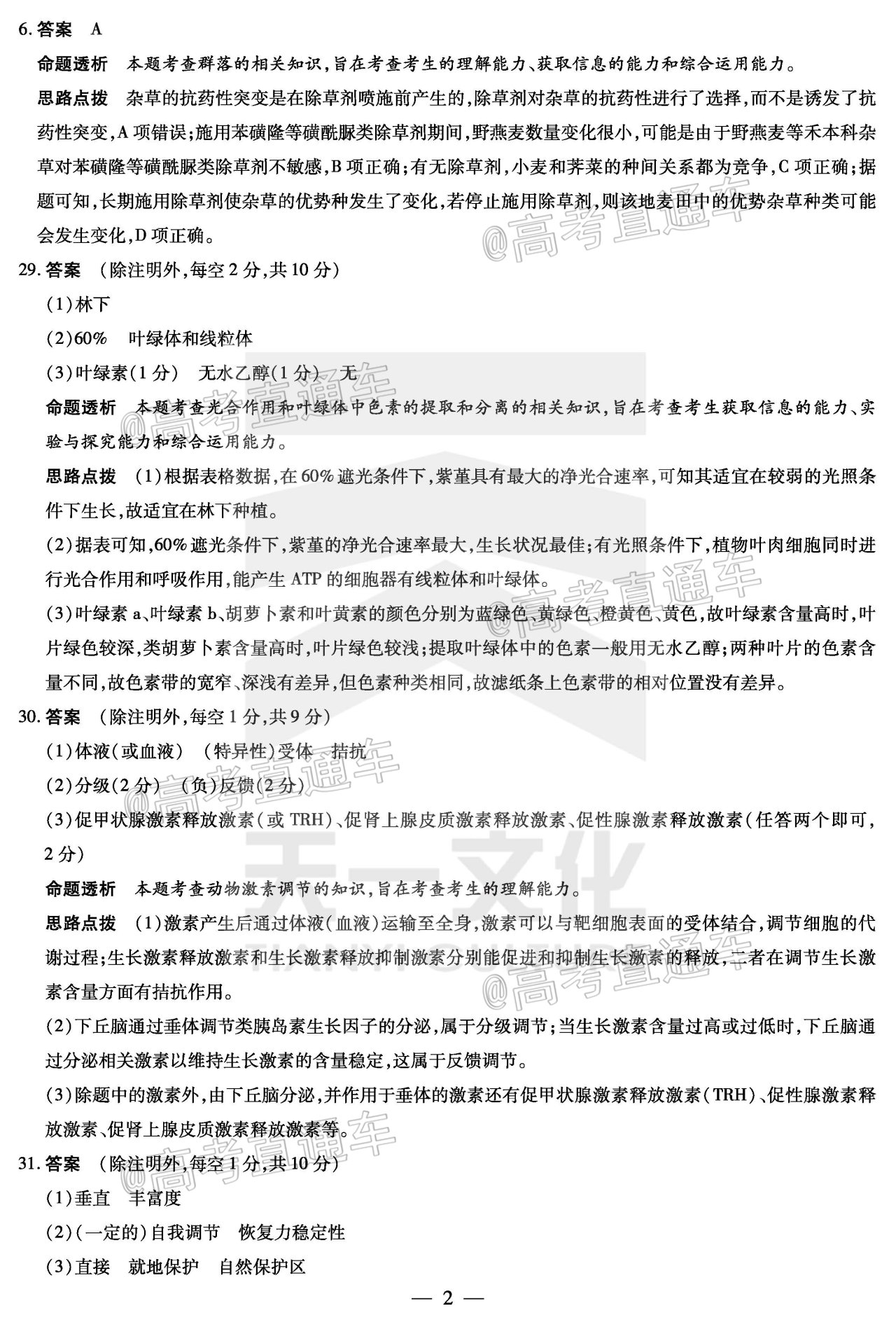 天一大联考理综试卷答案解析!天一大联考高三理综答案(2021年)