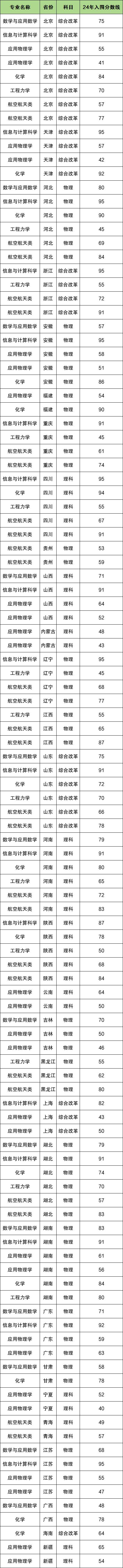 2024年北京航空航天大学强基计划入围分数线一览表: