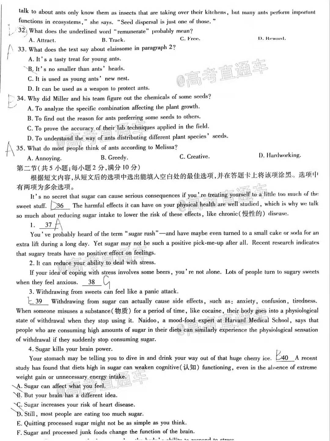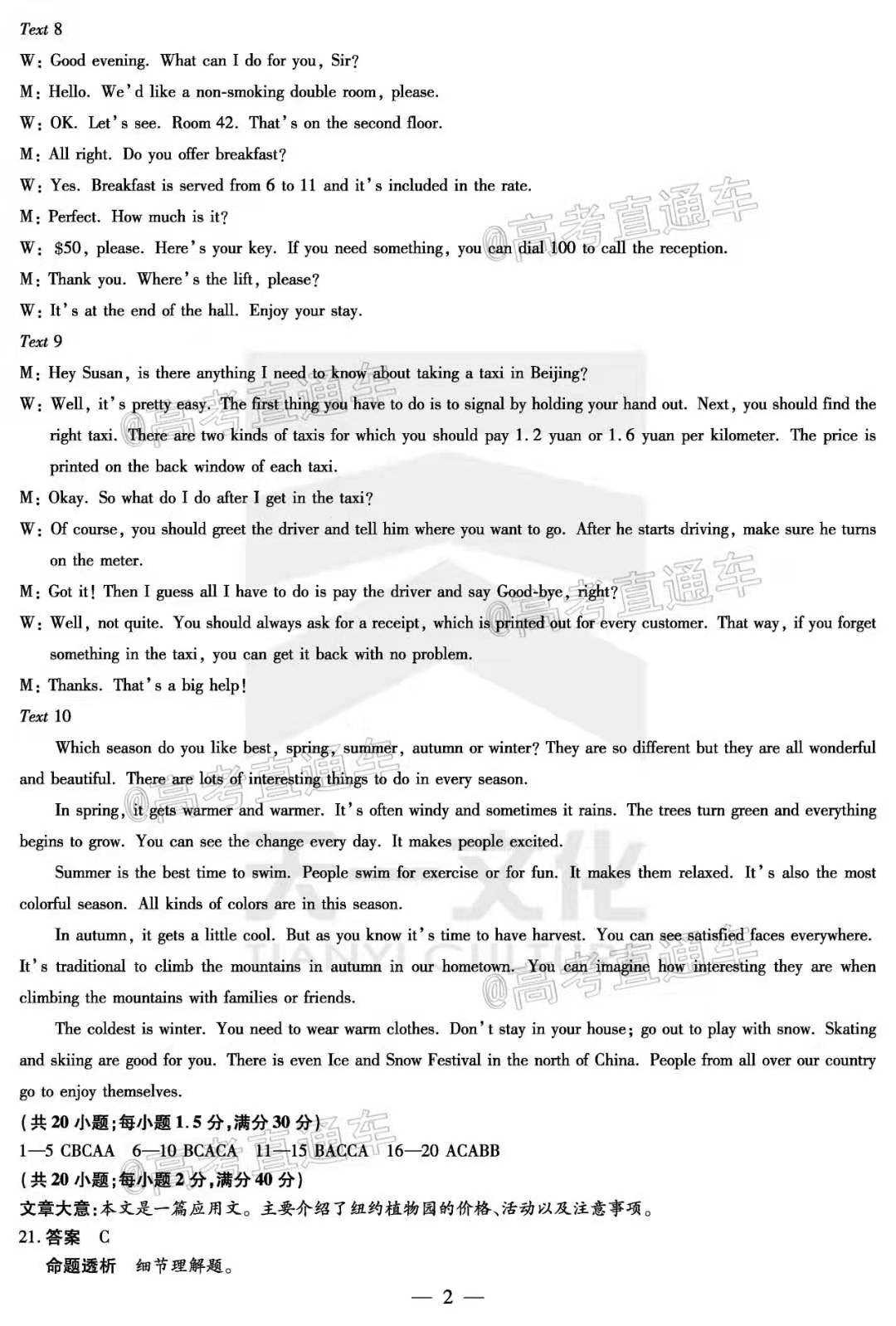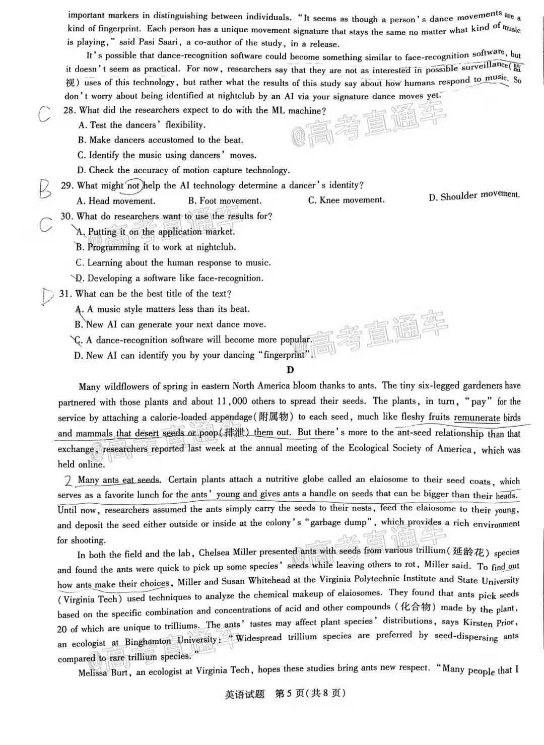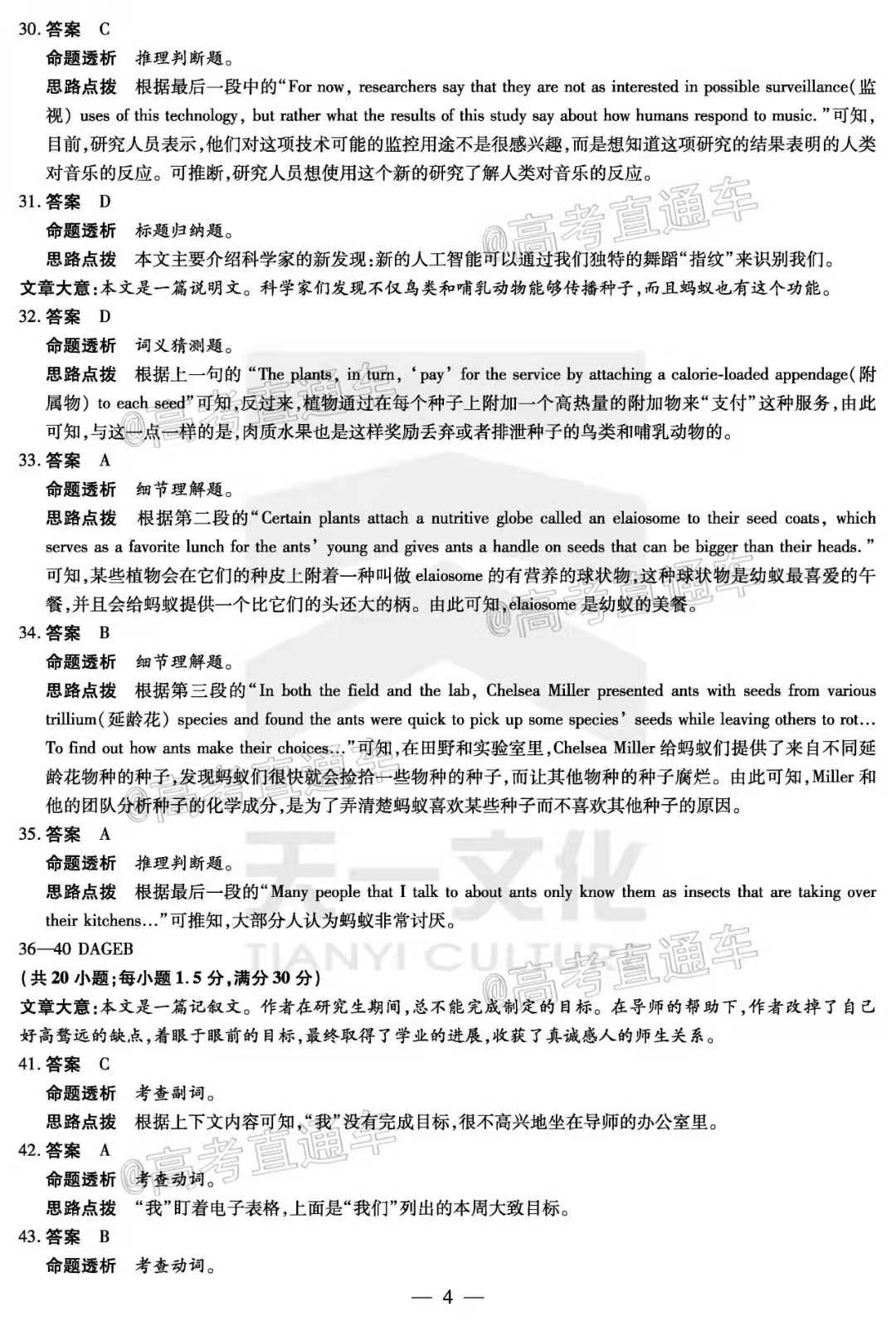河南省天一大联考英语考试已经结束,家长和考生们一定很关心考的怎么样,下面小编公布这次联考英语试卷答案及解析,供河南省考生和家长参考,以便估分和定位水平,查漏补缺,为高考全力冲刺瞄准方向。2021天一大联考英语试卷答案及解析:英语答案解析:
