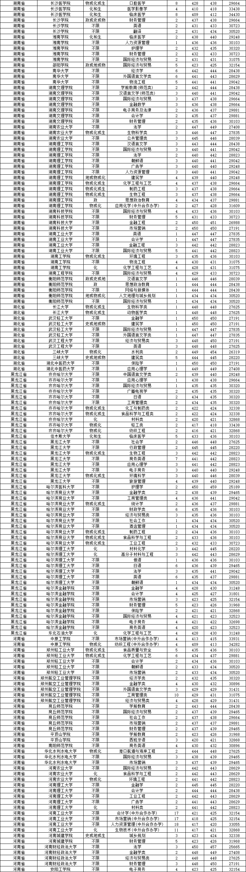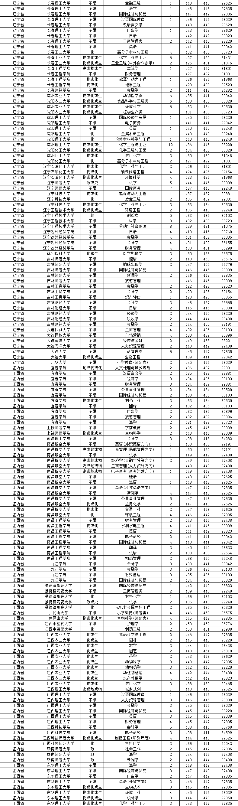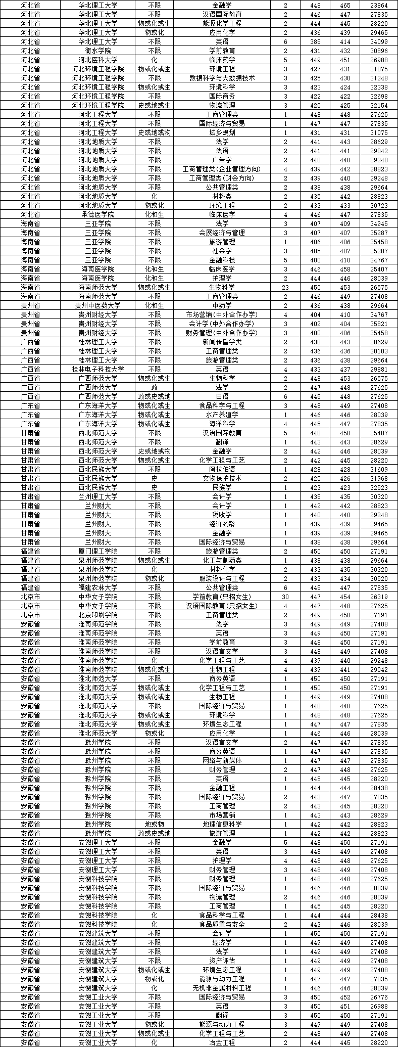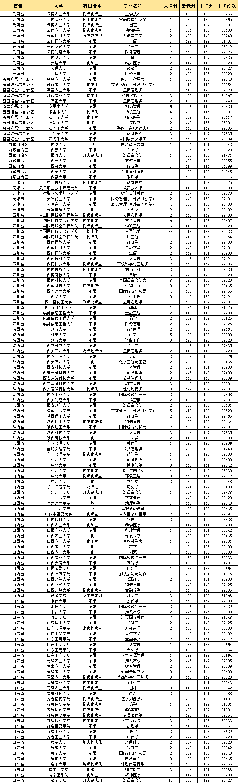 如果我们把范围扩展到全国,会发现420-440分没有选物理的考生,如果想要上一所公办大学,似乎也有很多的选择,甚至还包括3所211(西藏大学、新疆大学、新疆石河子大学)。
