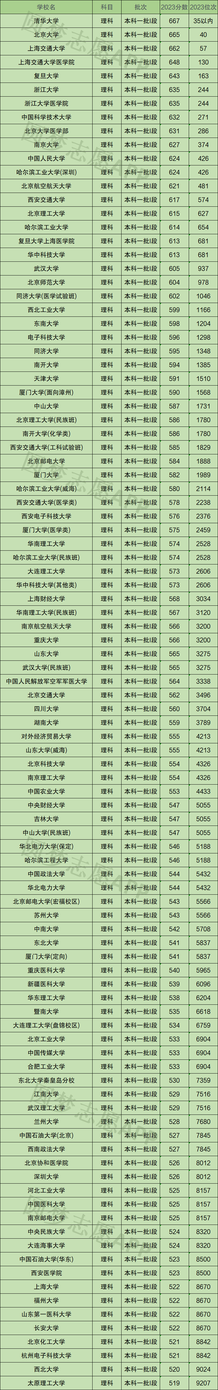 在全国本科大学中,理科考生里分数最高、最难考的是清华大学,最低录取分数是667分,所在的位次是35以内
