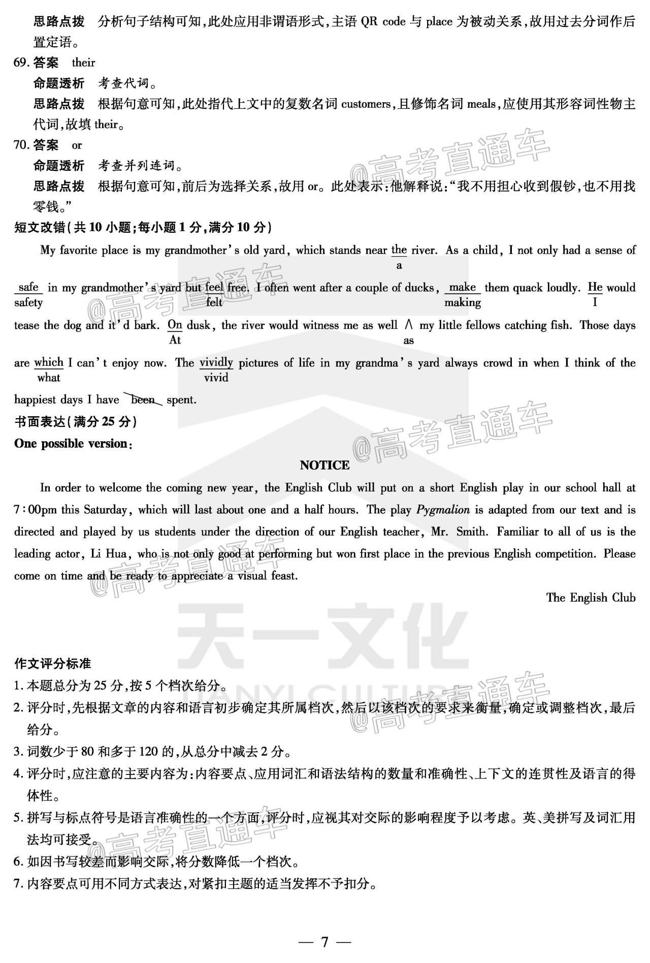 2021天一大联考英语答案及试题解析-附天一大联考英语作文模板