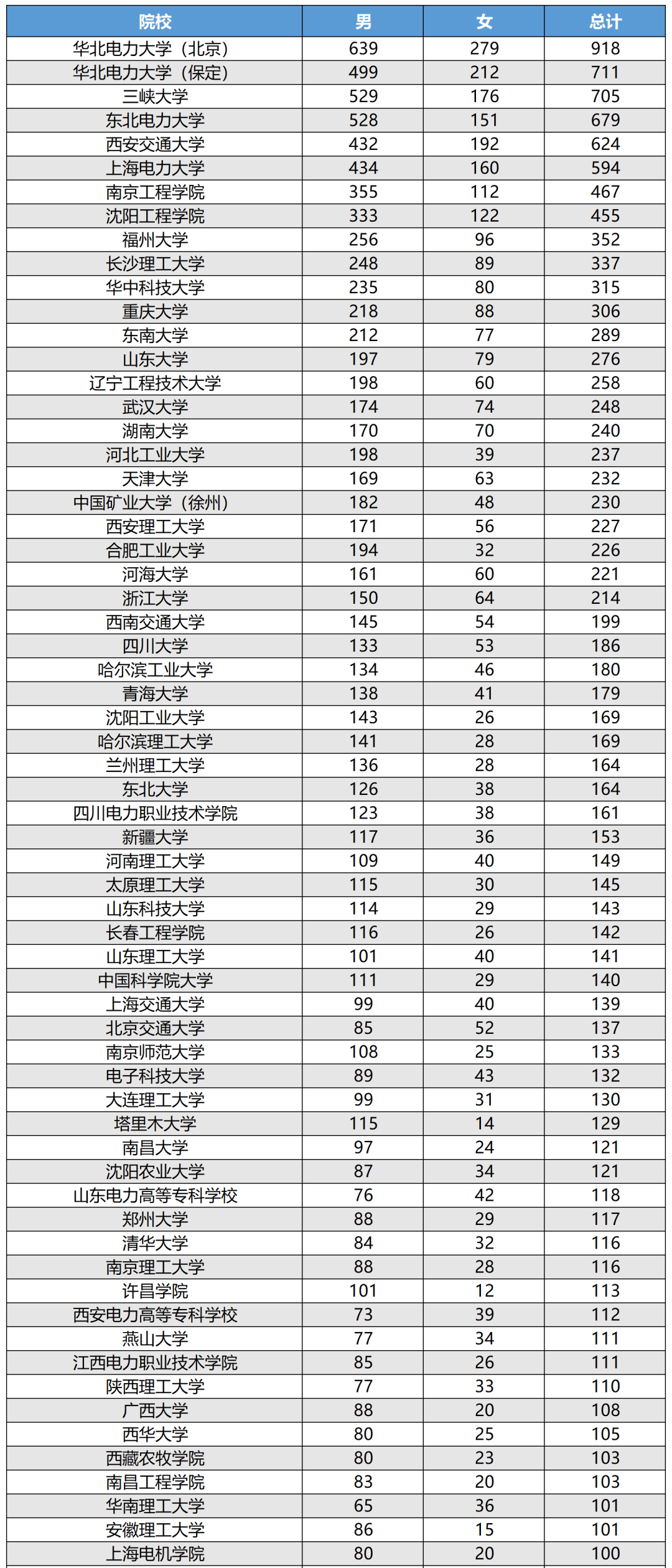 其中,华北电力大学(北京)、华北电力大学(保定)、三峡大学、东北电力大学、西安交通大学以及上海电力大学凭借卓越的学科实力和人才培养质量,以超过500人的录用人数成为最大赢家,稳坐电力霸主之位。