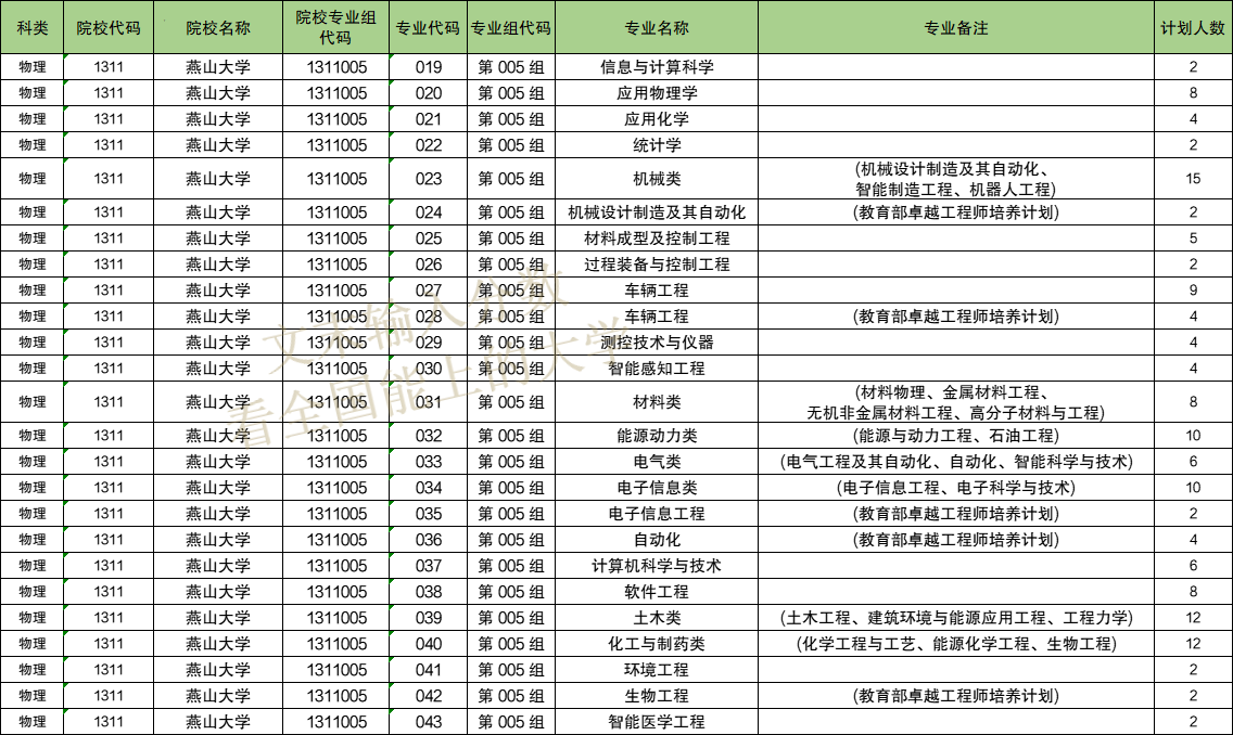 2024年燕山大学的招生代码为1311001、1311002、1311003等,本期将介绍2024年燕山大学各专业招生人数,以及高考志愿填报中各专业对应招生代码。