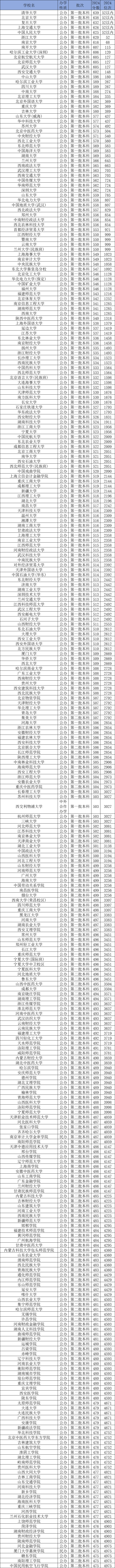 注:由于篇幅限制,本文只整理出文科前5千名、1万-1.5万名对应学校,理科前5千名、4万-4.5万名对应学校名单。