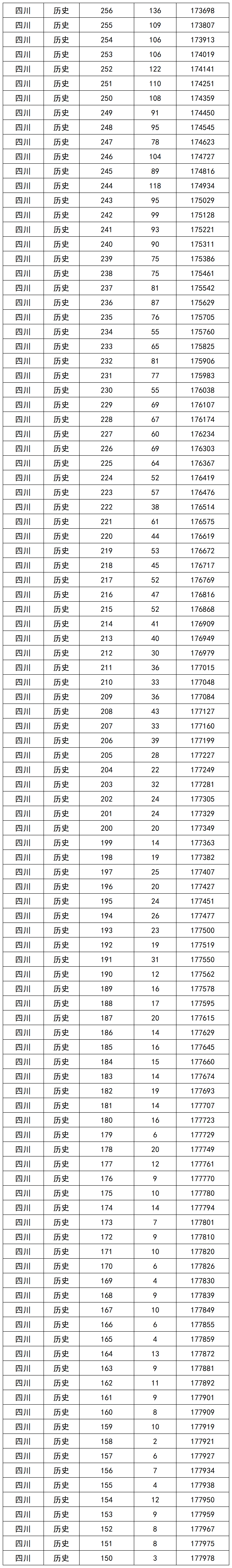 2025年四川历史组本科线467分,对应最低位次排名70656;特控线533分,对应最低位次排名28339;专科线150分,对应最低位次排名177978。
