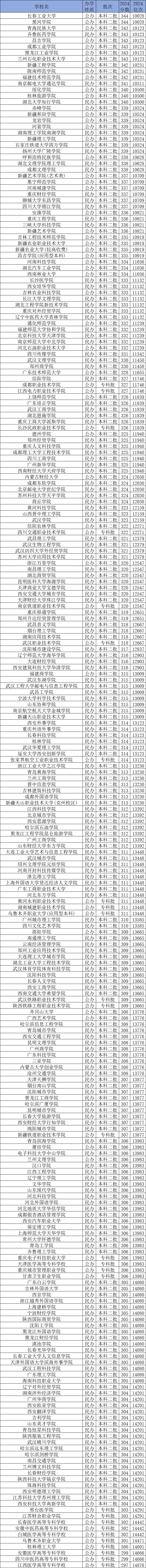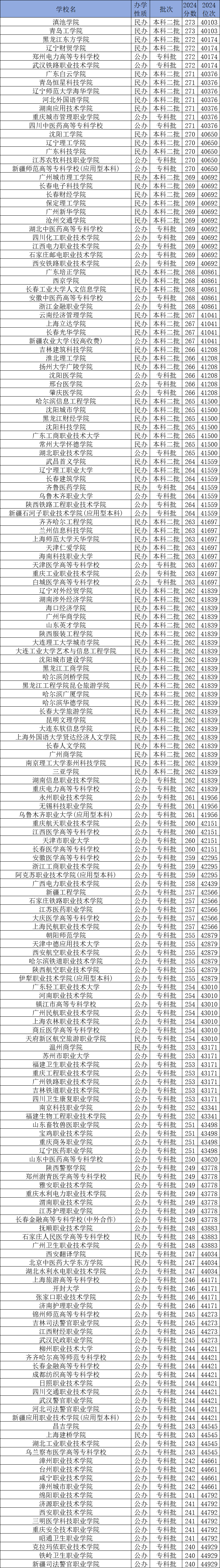 4万-4.5万名范围内,最高位次院校为滇池学院、青岛工学院,2024年录取位次是40103名,录取分数线是273分;