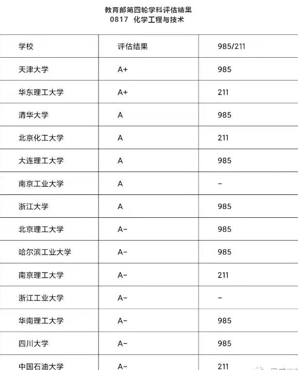 由于制药工程属于化学工程大类下的细分专业,所以我们以化学工程与技术一级学科的排名作为参考。