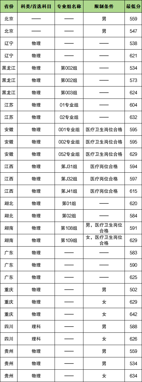 陆军军医大学2024年录取分数线一览表可直接见下: