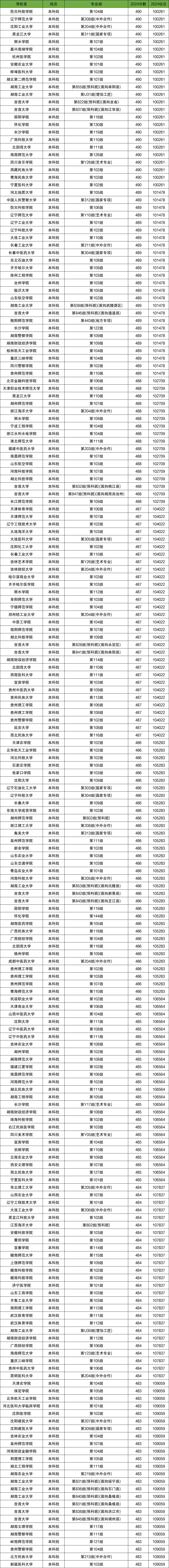 2024年全国大学在湖南物理中录取位次为10-11万的有207个院校专业组,对应分数区间为490-483分。