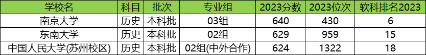 下表为2023年江苏省内985大学的历史类分数线