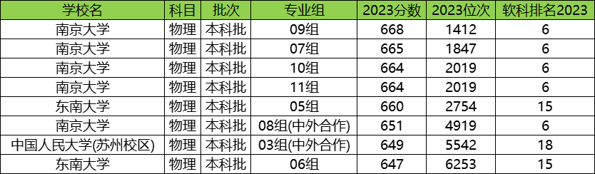 下表为2023年江苏省内985大学的物理类分数线