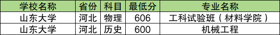 学校高校专项计划历史类最低分数线是600分,对应的招生专业是机械工程;物理类最低分数线是606分,对应的招生专业是工科试验班(材料学院)。