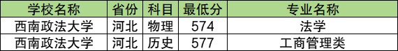 学校高校专项计划历史类最低分数线是577分,对应的招生专业是工商管理类;物理类最低分数线是574分,对应的招生专业是法学。