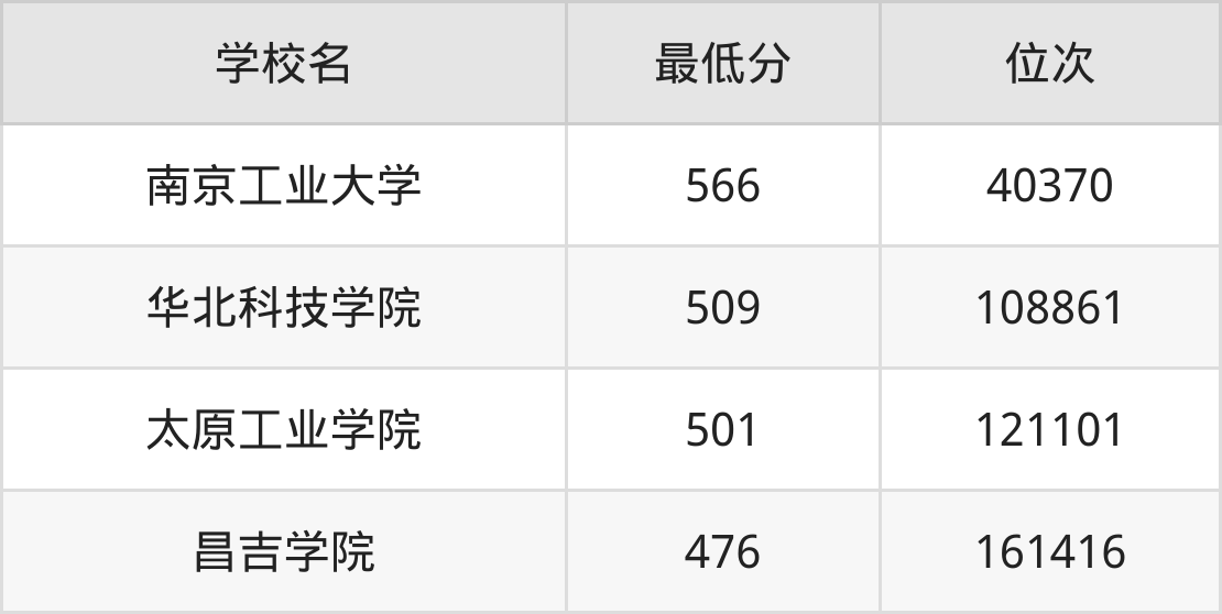 下面是本科化工安全工程录取分数线一览表: