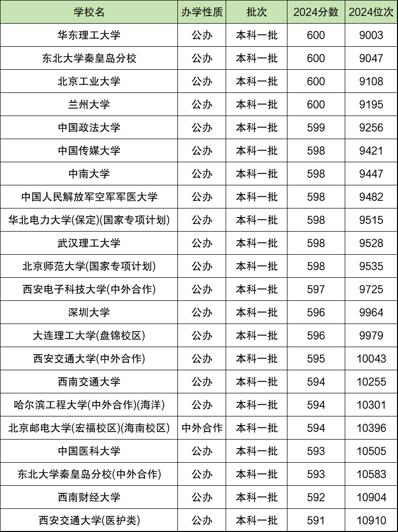 因为招生院校众多,不能展示全部成绩排名对应的大学名单,本文就以文科位次1万名、3万名、5万名,理科位次1万名、7万名、10万名左右能上的大学名单,供2025年考生参考。