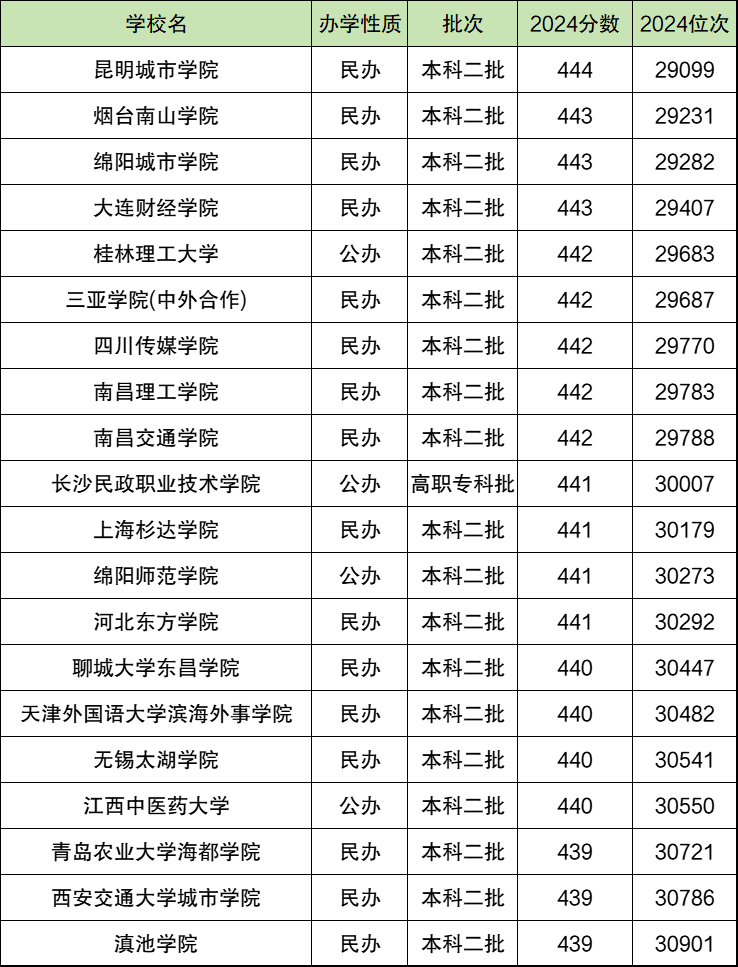 陕西文科成绩排名3万能上的大学具体位次为:29099名-30901名,共有20所,对应分数为444分-439分。