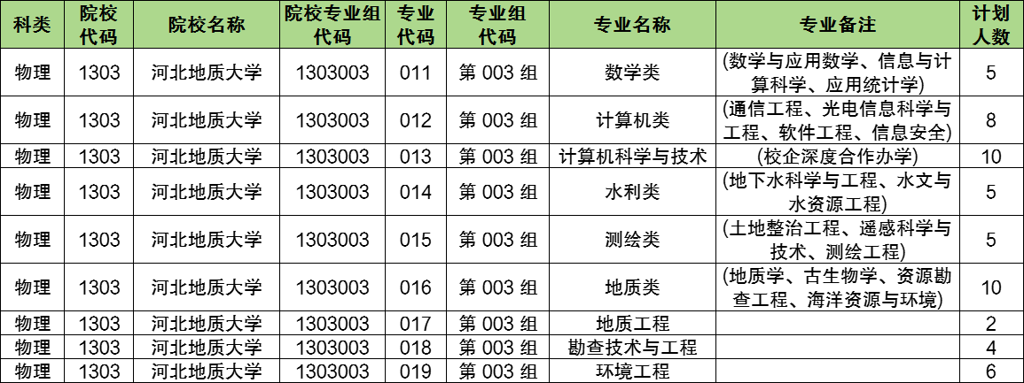第003组:专业组代码为1303003,包含专业数学类、计算机类、计算机科学与技术、水利类、测绘类、地质类、地质工程、勘查技术与工程、环境工程